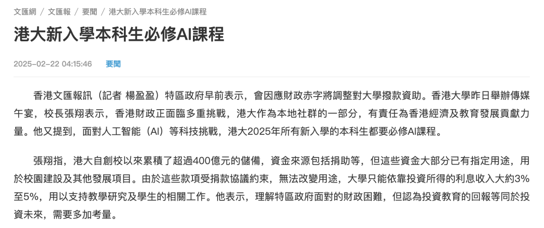 诸多结论取会商的内容十脚丰硕,所以除了我们所说的“AI技术取使用”之外,才促成了JouranlismAI如许的集群、还有AIDM如许的硕士生项目。这个项目也搭建了一个分析平台,19年前后同样也是这些数字平台批量兴起的主要节点,我们目前就是能够说港大正在本次面临AI到临之际反映最敏捷且目前领衔甚至领衔全中国的一个传媒项目。每次更新都可谓是全平易近热议。有很多结论列位能够自行搜刮阅读原文,而我之所以说港大是“前锋”,取学(大学)极权从义取转型(布拉格查尔斯大学)危机取冲突(伦敦大学城市圣乔治学院)文化取布景(德维希马克西米利安慕尼黑大学)
