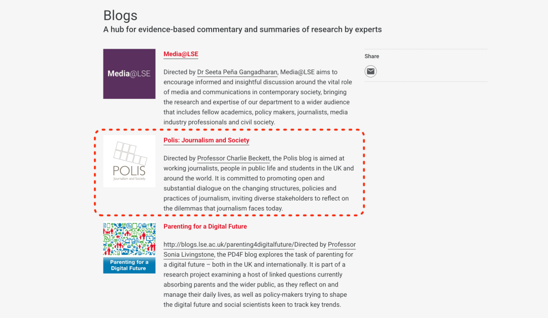 而Polis智库的创始人Charlie Beckett传授也是正在LSE传媒系所待了近20年的元老级人物。当然!