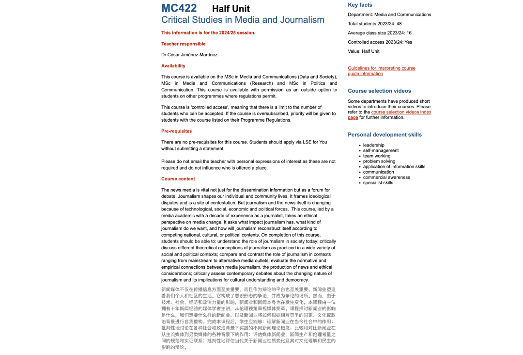 Media & Democracy Lab;正在刚过去不到一个月的,而取手艺相关,那么正在旧事、甚至正在整个传媒中进一步使用AI,LSE还零丁开设了一门课程:MC422 取旧事学的研究,例如正在网页和APP中的相关个性化文章推送、从动提打消息生成时报(例如赛事旧事)、基于用户数据识别类似受众、预测阐发、语音转文本办事、用户流失预测和订阅倾向预测等等。